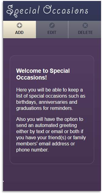 The Birthday Special Occasion Reminder application is a program that can be installed on a mobile device such as an Apple iPhone, Android phone, Windows Phone, iPad or other mobile devices that are capable of installing applications from Google Play, Apple AppStore or Windows Phone store.
