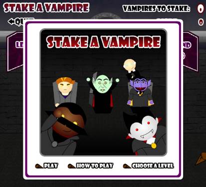 Stake a Vampire is a whack-a-mole type game where you stake a vampire that appears out of the coffin. Each level requires a certain amount to be staked before the timer runs out in order to move on to the next level.