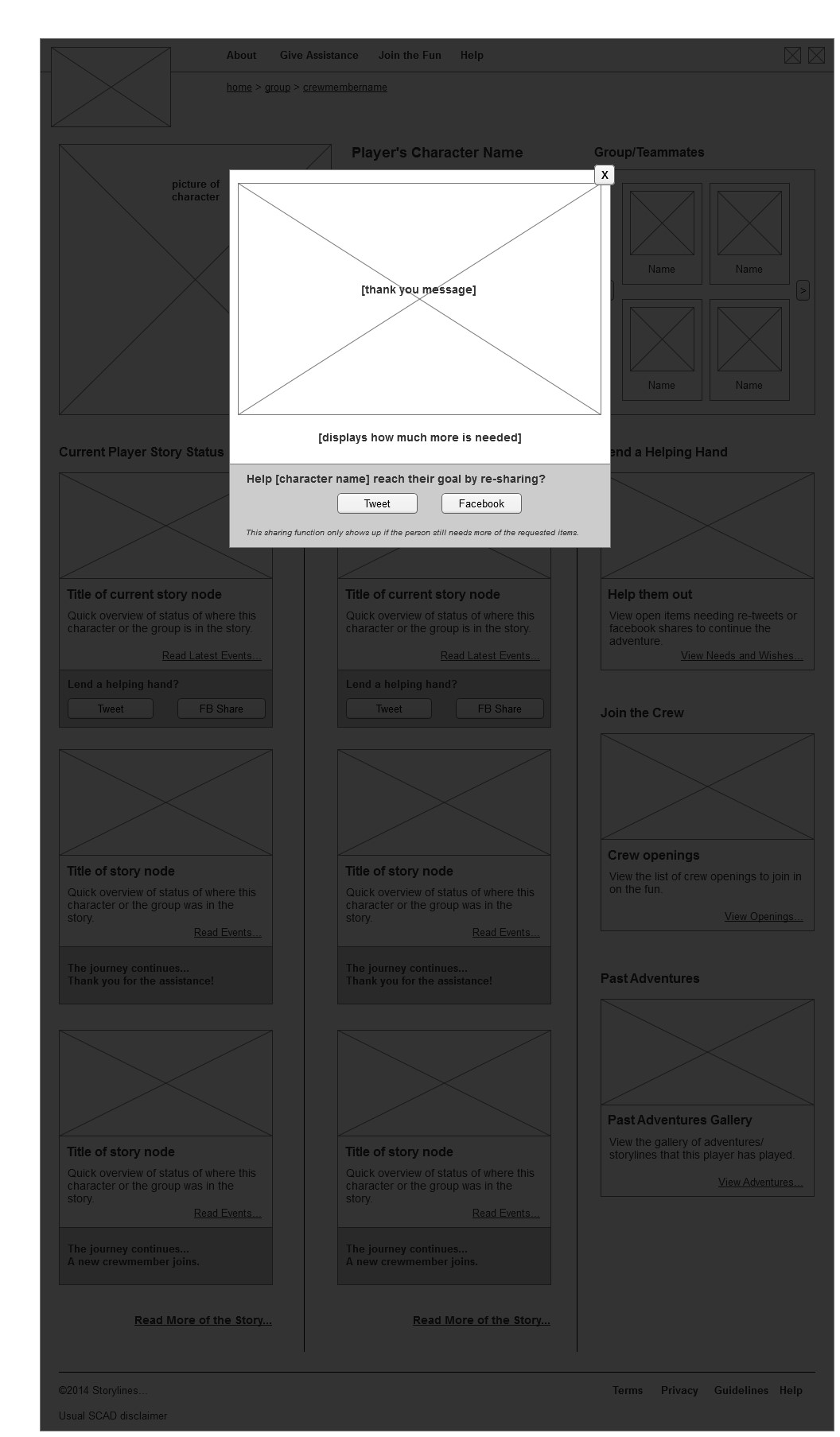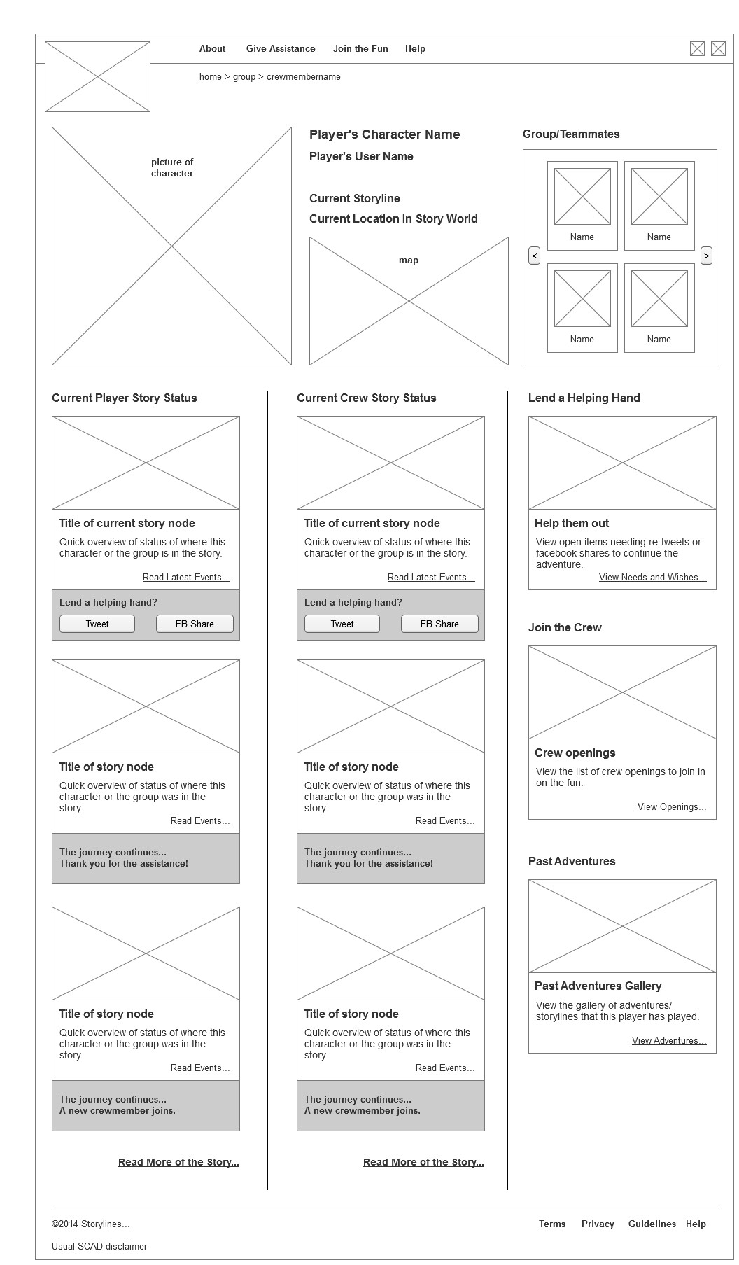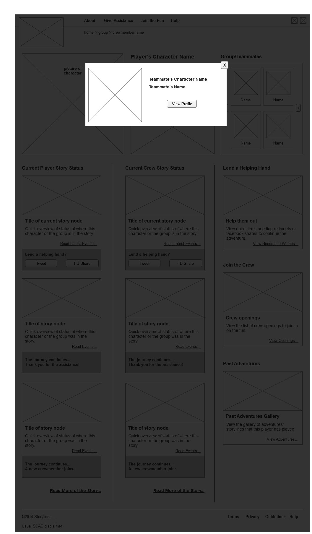 Design, ITGM765, Prototype Wireframes – in progress by Ally • April 28, 2014 • Comments Off on Wireframes – in progress Creating the wireframes for the main site of the prototype. Home Landing Page Profile Page for players Profile Page view teammate overlay Profile Page – thank you note overlay
