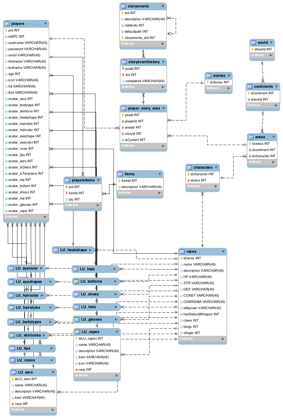 So here is the database design for the MySQL database of the project. I had to rework it from the original design which was one large table. What is diagrammed above is the various tables and their relationships to one another. I reached out to my coworker at work who is one of the top eight in the US that knows DB design inside and out. He was able to help me understand how to design DB much better.
